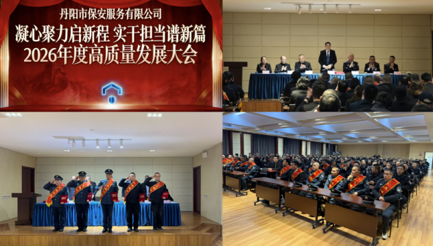 凝心聚力启新程 实干担当谱新篇 丹阳市保安服务有限公司召开2026年高质量发展大会发布时间:2026-03-25 点击:293月24日,丹阳保安服务有限公司召开2026年高质量发展大会。公司党支部书记洪国平全面总结2025年工作成效,深入剖析公司当前面临的形势和短板,并围绕“稳主拓新、强化安全意识、提升管理效能”三方面部署2026年重点任务,动员全体职工奋力推动公司高质量发展。会议表彰了5个先进中队、92名“先进个人”及10名“十佳退役军人”,先进代表分享履职感悟,各业务部门负责人现场递交《目标责任状》,以庄严承诺吹响奋进号角。